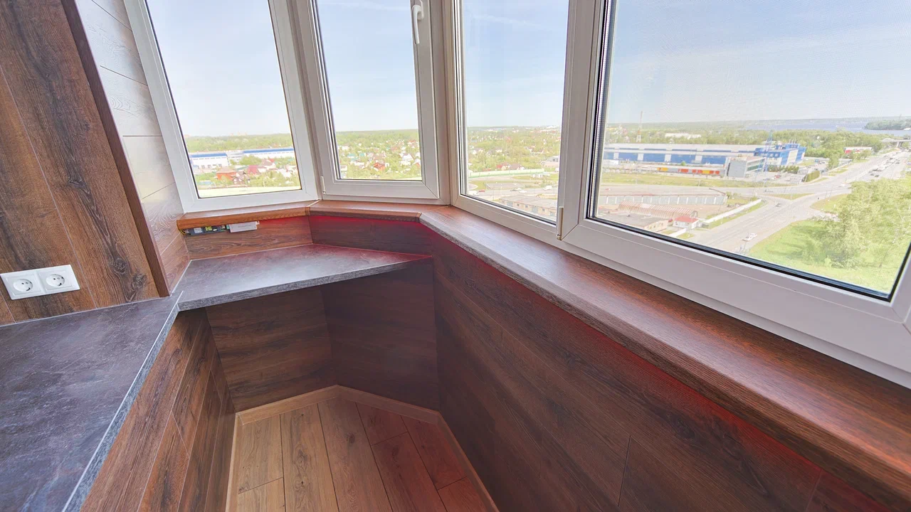 Тёплый П-образный балкон с объединением и отделкой под искусственный камень — отличный способ расширить пространство и повысить комфорт. В рамках проекта демонтировано старое остекление, установлены окна Rehau 70 с мультифункциональным стеклом и утепление по системе «Термос». Выполнена отделка гипсокартоном и облицовка искусственным камнем. Тёплый пол под плиткой, встроенное освещение, столешница — всё для уюта и функциональности.