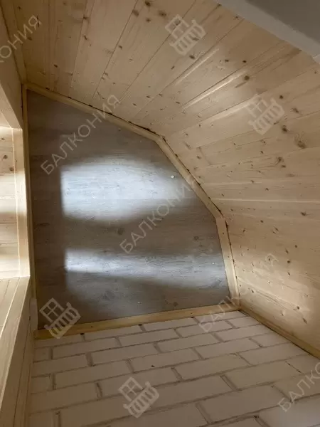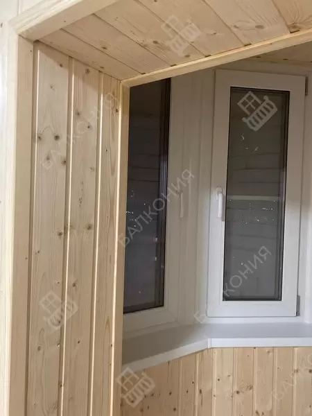 Отделка и утепление эркерной лоджии 3 200 мм, в панельном доме серии П-3/16: Утепление пенополистерол и пенофол, отделка стен и потолка выполнена евро вагонкой из дерева (сосна), полы ламинат, установлен теплый пол, пластиковые окна Rehau. Выведено и разведено по балкону электричество. Материал предоставлялся компаний Балкония согласно пожеланиям заказчика.