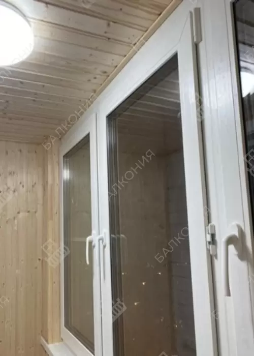 В данном объекте было выполнено остекление лоджии, окнами ПВХ Rehau delight, сделано утепление, лоджия обшит вагонкой из дерева (сосна), выведено электричество и установлен теплый пол, на пол постелили ламинат, потолок обшит вагонкой В результате отделочных работ получили полноценную комнату.